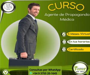 Este curso te permite Iniciar desde cero y conseguir en poco tiempo conocimientos avanzados en Agente Auxiliar en Propaganda Médica (visitador médico). Dirigido a personas con ganas de ampliar sus conocimientos y fortalecer sus habilidades para poder obtener una certificación que acredite sus conocimientos y así poder encaminar su vida laboral hacia donde deseen.