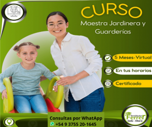 El presente curso de capacitación está destinado a personas que deseen desarrollar tareas en jardines maternales y guarderías, jardines comunitarios; brindándoles una formación teórica sobre las funciones y aspectos madurativos, intelectuales y afectivos del niño; cuidados corporales y preventivos, conjuntamente con una formación práctica para la estimulación creativa y expresiva de los mismo.
